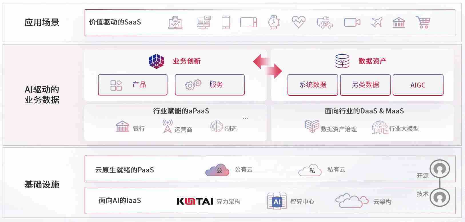 数字时代,,围绕企业数字化转型的关键要素,,,,龙8头号玩家数码开创性的提出数云融合战略和技术体系框架,,,,着力在云原生、、数字原生、、、、AI原生和信创产业上架构产品和服务能力,,,,为处在不同数字化转型阶段的快消零售、、、汽车、、金融、、、、医疗、、、政企、、、、教育、、、、运营商等行业客户提供泛在的敏捷IT能力和融合的数据驱动能力,,构建跨界融合创新的数字业务场景和新业务模式,,,助力企业级客户建立面向未来的核心能力和竞争优势,,,全面推动社会的数字化、、、、智能化转型升级。。。。